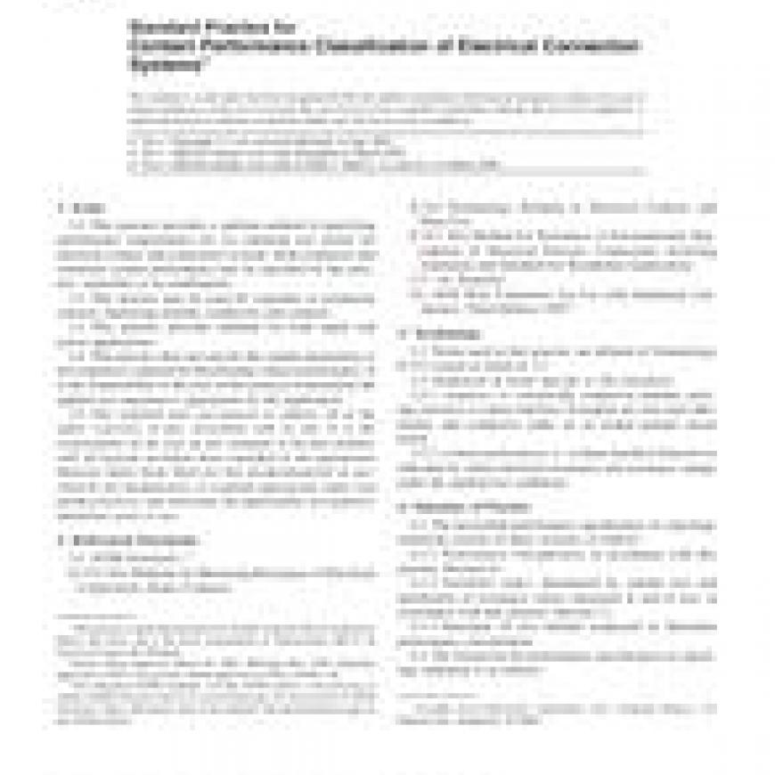 1.1 This practice provides a uniform method of specifying performance requirements for (or reporting test results of) electrical contact and connection systems. Both conductor and connector system performance may be specified by this practice, separately or in combination.