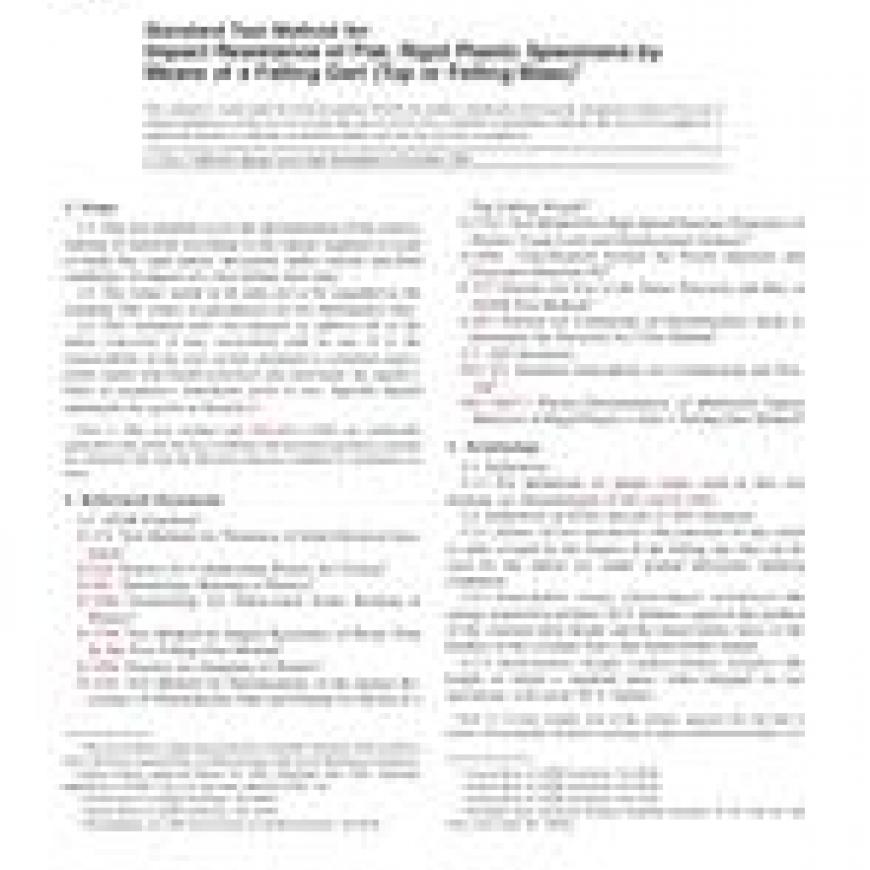 ASTM D5628-96(2001)e1 Standard Test Method for Impact Resistance of Flat, Rigid Plastic Specimens by Means of a Falling Dart (Tup or Falling Mass)