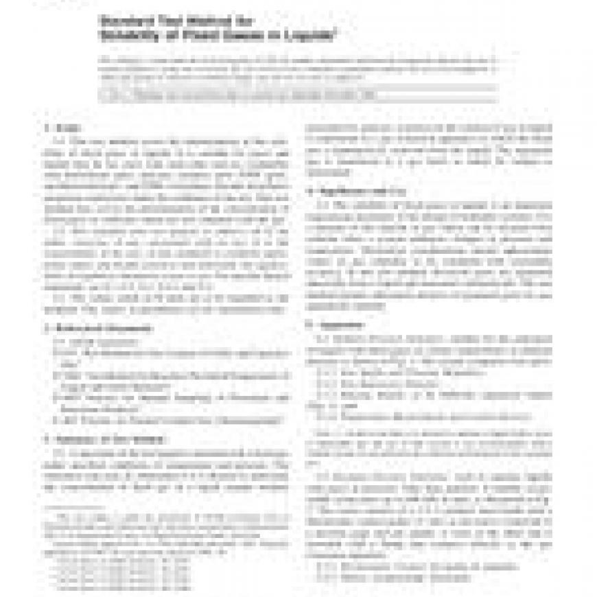 ASTM D2780-92(2002)e1 Standard Test Method for Solubility of Fixed Gases in Liquids
