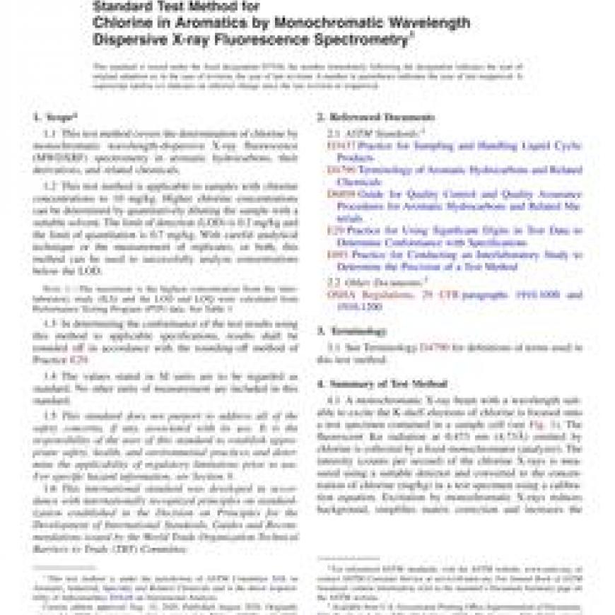 ASTM D7536-20 Standard Test Method for Chlorine in Aromatics by Monochromatic Wavelength Dispersive X-ray Fluorescence Spectrometry