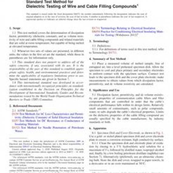 ASTM D4872-14(2020) Standard Test Method for Dielectric Testing of Wire and Cable Filling Compounds