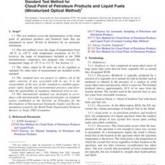 ASTM D7397-20 Standard Test Method for Cloud Point of Petroleum Products and Liquid Fuels (Miniaturized Optical Method)