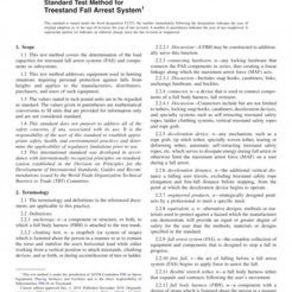 1.1This test method covers the determination of the load capacities for treestand fall arrest systems (FAS) and components or subsystems.