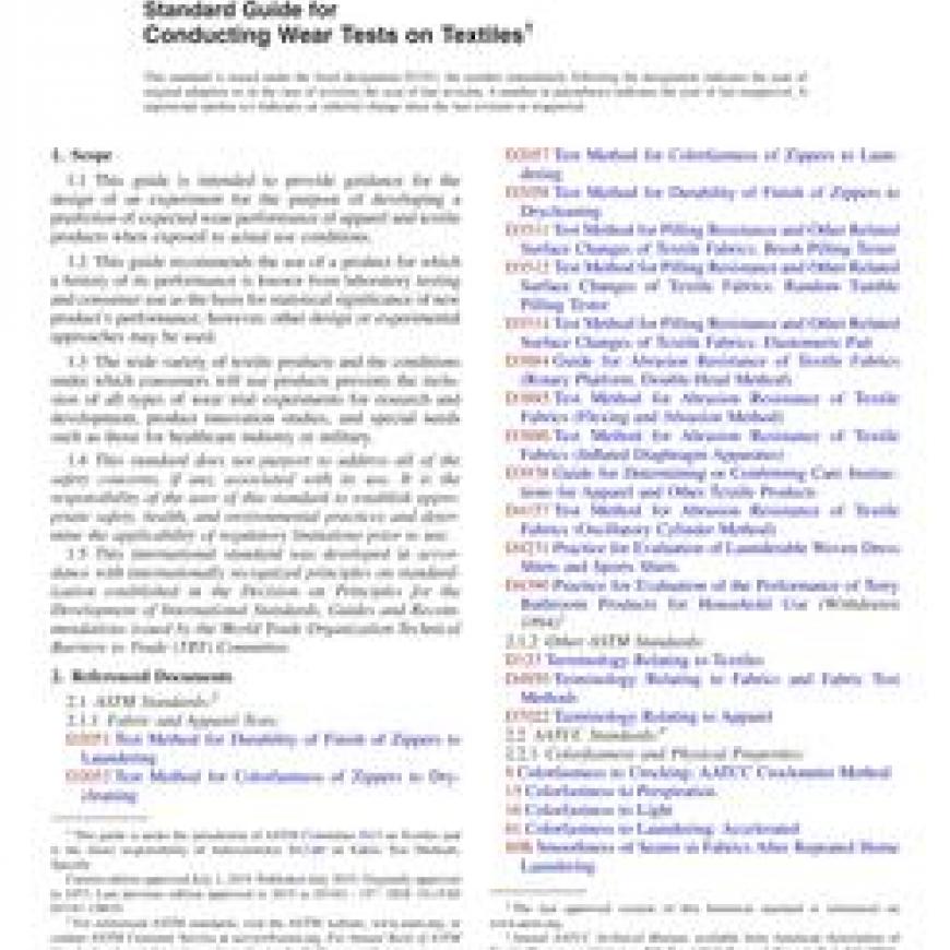 ASTM D3181-15(2019) Standard Guide for Conducting Wear Tests on Textiles