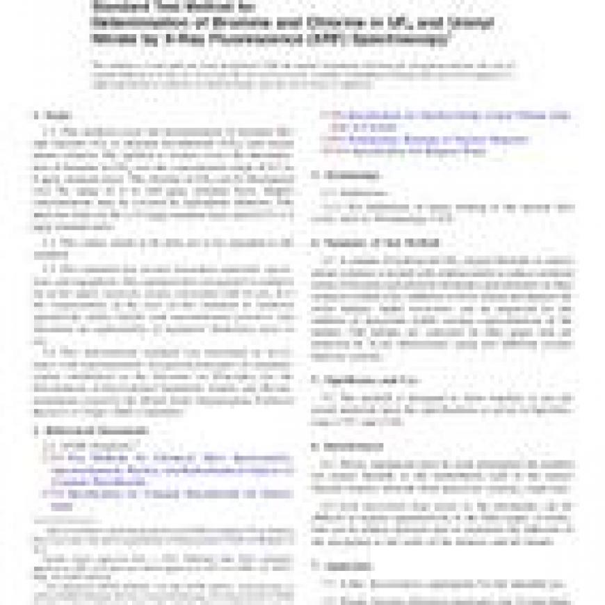 ASTM C1508-18 Standard Test Method for Determination of Bromine and Chlorine in UF6 and Uranyl Nitrate by X-Ray Fluorescence (XRF) Spectroscopy