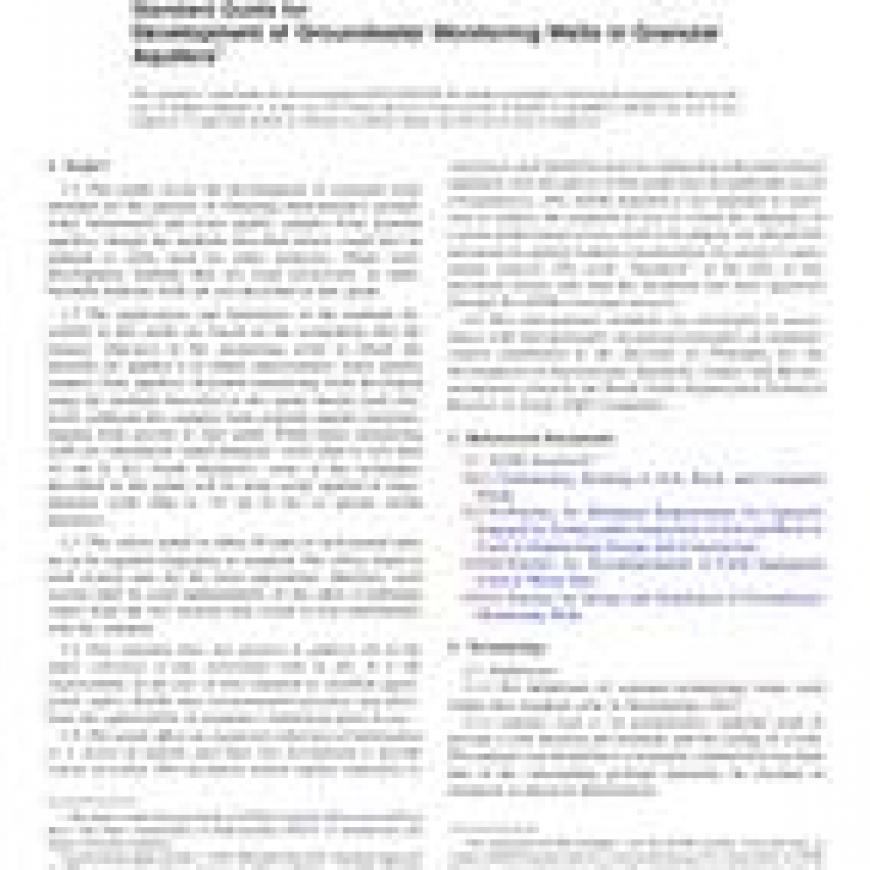 ASTM D5521/D5521M-18 Standard Guide for Development of Groundwater Monitoring Wells in Granular Aquifers