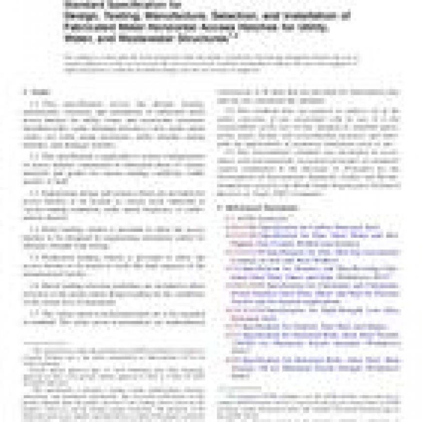 ASTM C1802-18a Standard Specification for Design, Testing, Manufacture, Selection, and Installation of Fabricated Metal Horizontal Access Hatches for Utility, Water, and Wastewater Structures