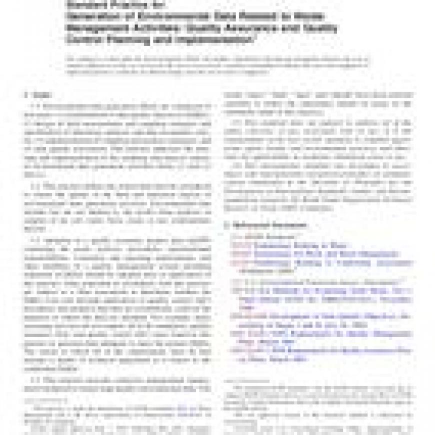 ASTM D5283-18 Standard Practice for Generation of Environmental Data Related to Waste Management Activities: Quality Assurance and Quality Control Planning and Implementation