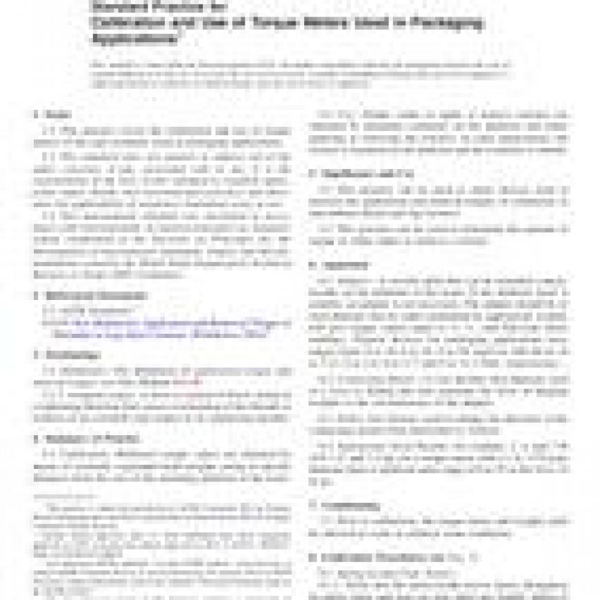 ASTM D3474-90(2018) Standard Practice for Calibration and Use of Torque Meters Used in Packaging Applications
