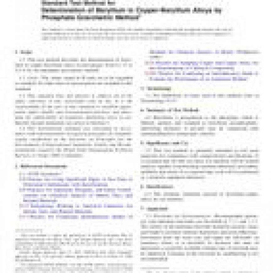 ASTM E2824-18 Standard Test Method for Determination of Beryllium in Copper-Beryllium Alloys by Phosphate Gravimetric Method