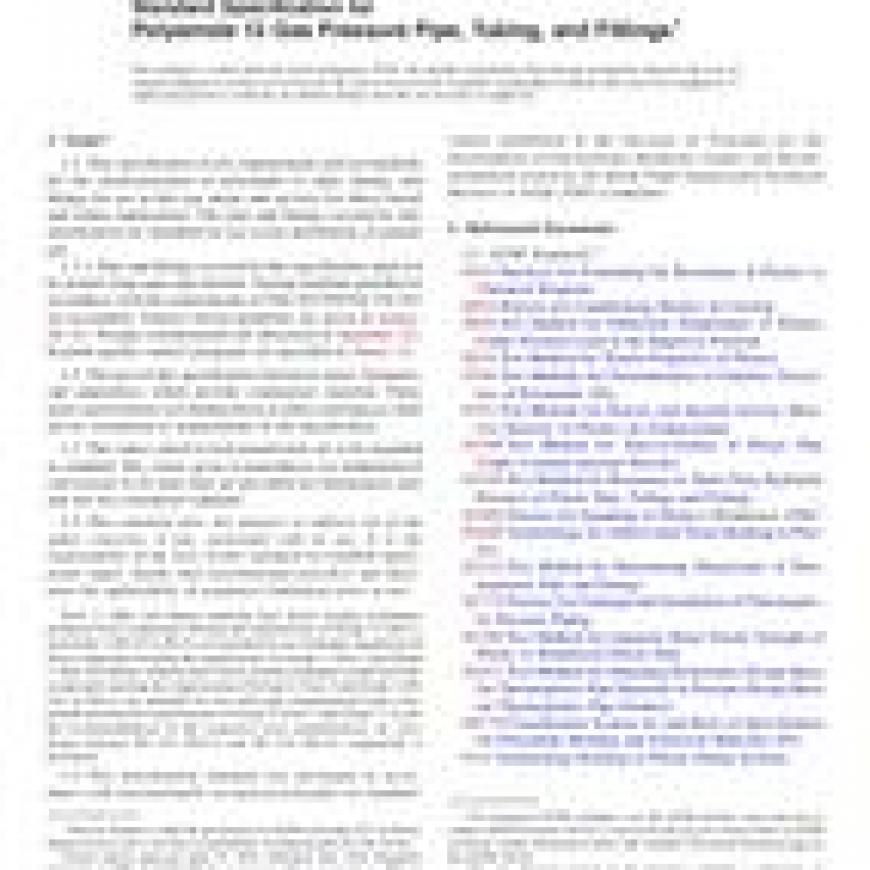 1.1This specification covers requirements and test methods for the characterization of polyamide 12 pipe, tubing, and fittings for use in fuel gas mains and services for direct burial and reliner applications. The pipe and fittings covered by this specification are intended for use in the distribution of natural gas.