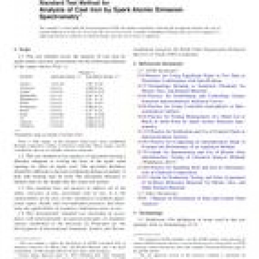 1.1This test method covers the analysis of cast iron by spark atomic emission spectrometry for the following elements in the ranges shown (Note 1):