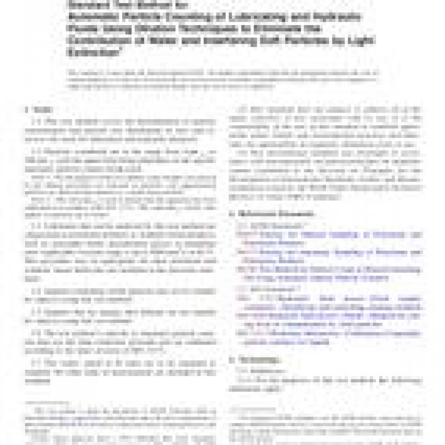 ASTM D7647-10(2018) Standard Test Method for Automatic Particle Counting of Lubricating and Hydraulic Fluids Using Dilution Techniques to Eliminate the Contribution of Water and Interfering Soft Particles by Light Extinction