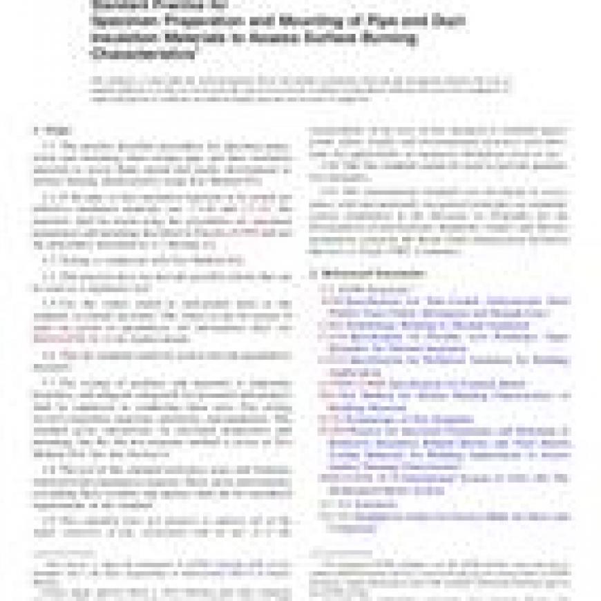 1.1This practice describes procedures for specimen preparation and mounting when testing pipe and duct insulation materials to assess flame spread and smoke development as surface burning characteristics using Test Method E84.