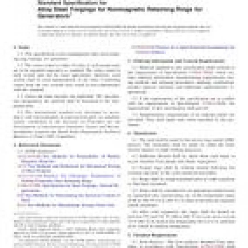 1.1This specification covers nonmagnetic alloy steel retaining ring forgings for generators.