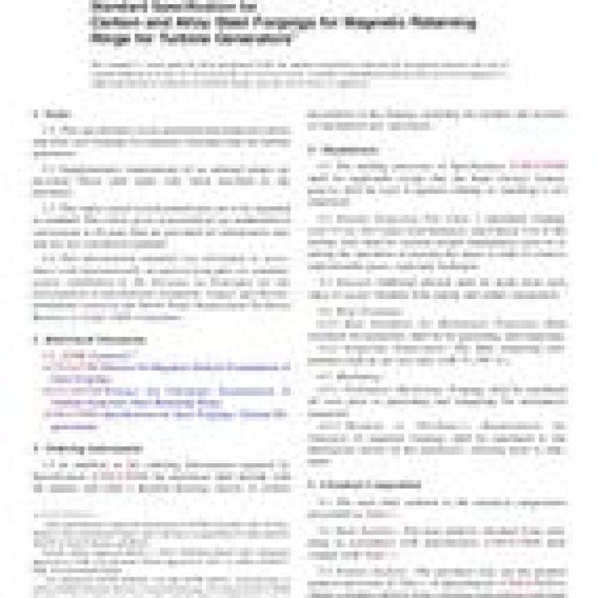 1.1This specification covers quenched and tempered carbon and alloy steel forgings for magnetic retaining rings for turbine generators.