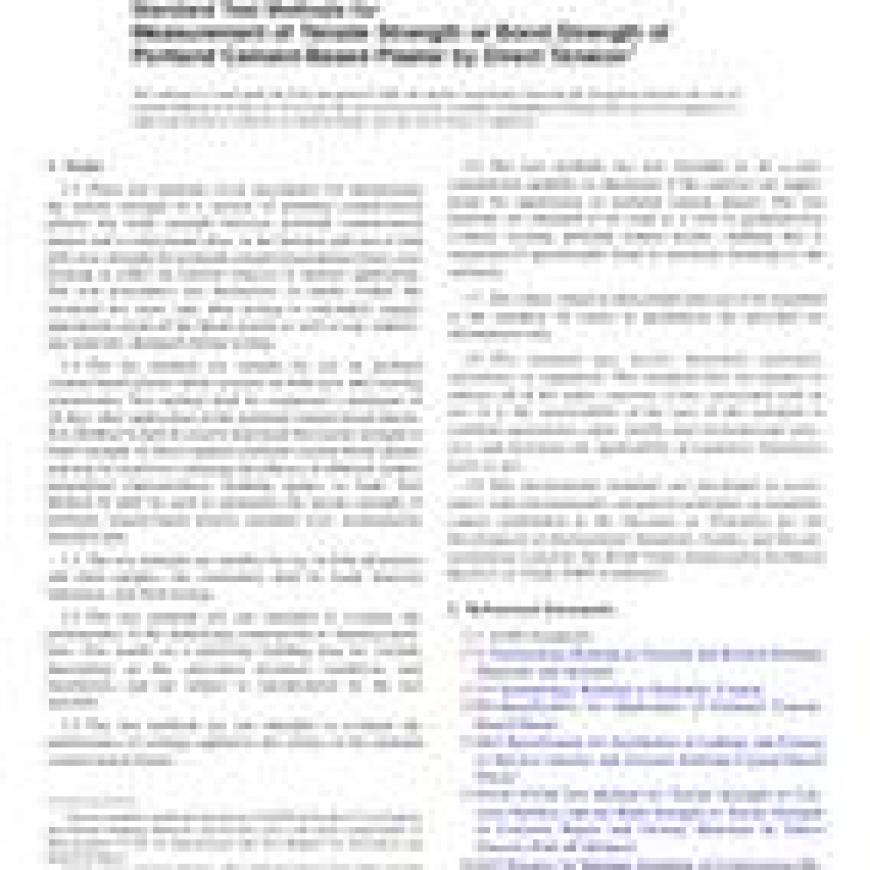 ASTM C1860-18 Standard Test Methods for Measurement of Tensile Strength or Bond Strength of Portland Cement-Based Plaster by Direct Tension