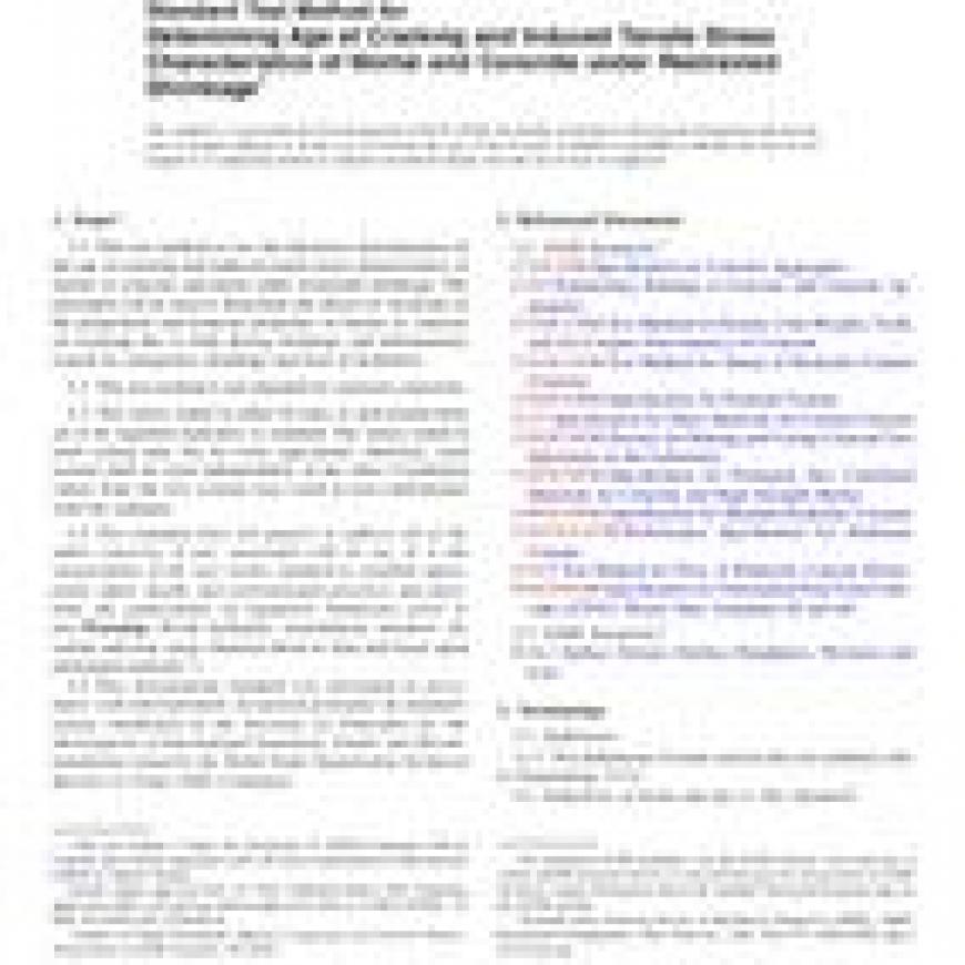 ASTM C1581/C1581M-18 Standard Test Method for Determining Age at Cracking and Induced Tensile Stress Characteristics of Mortar and Concrete under Restrained Shrinkage