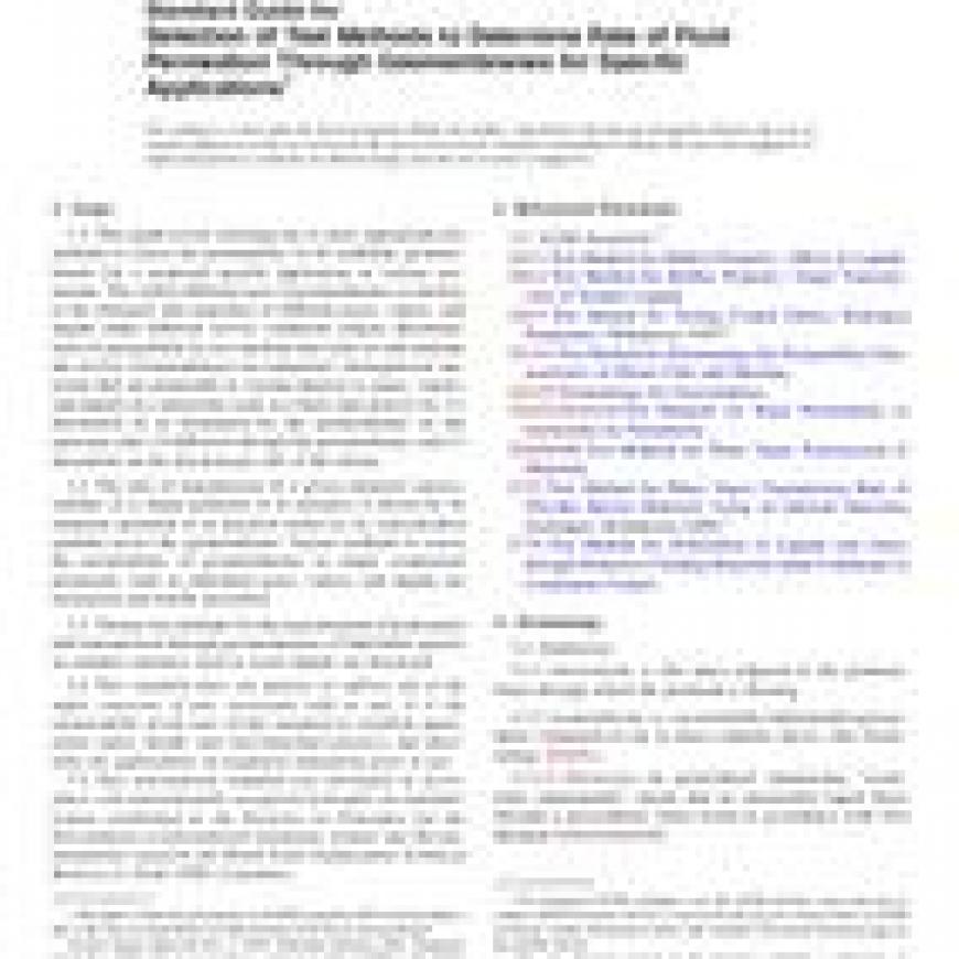 ASTM D5886-95(2018) Standard Guide for Selection of Test Methods to Determine Rate of Fluid Permeation Through Geomembranes for Specific Applications