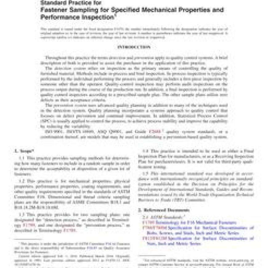 ASTM F1470-18 Standard Practice for Fastener Sampling for Specified Mechanical Properties and Performance Inspection
