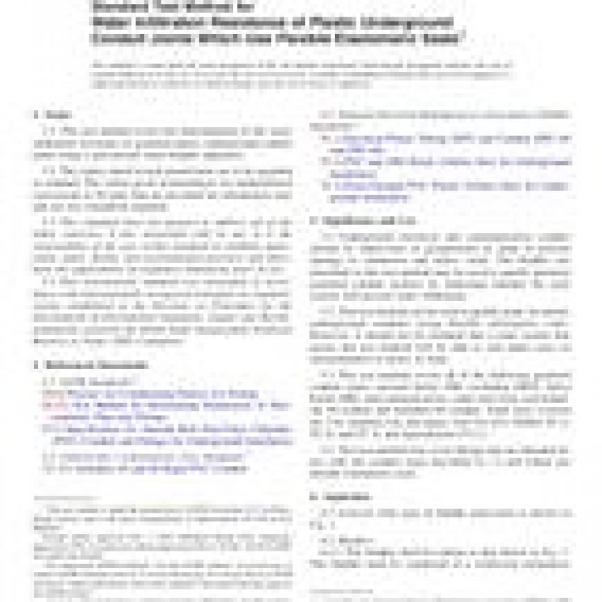 1.1This test method covers the determination of the water infiltration resistance of gasketed plastic underground conduit joints using a pressurized water bladder apparatus.