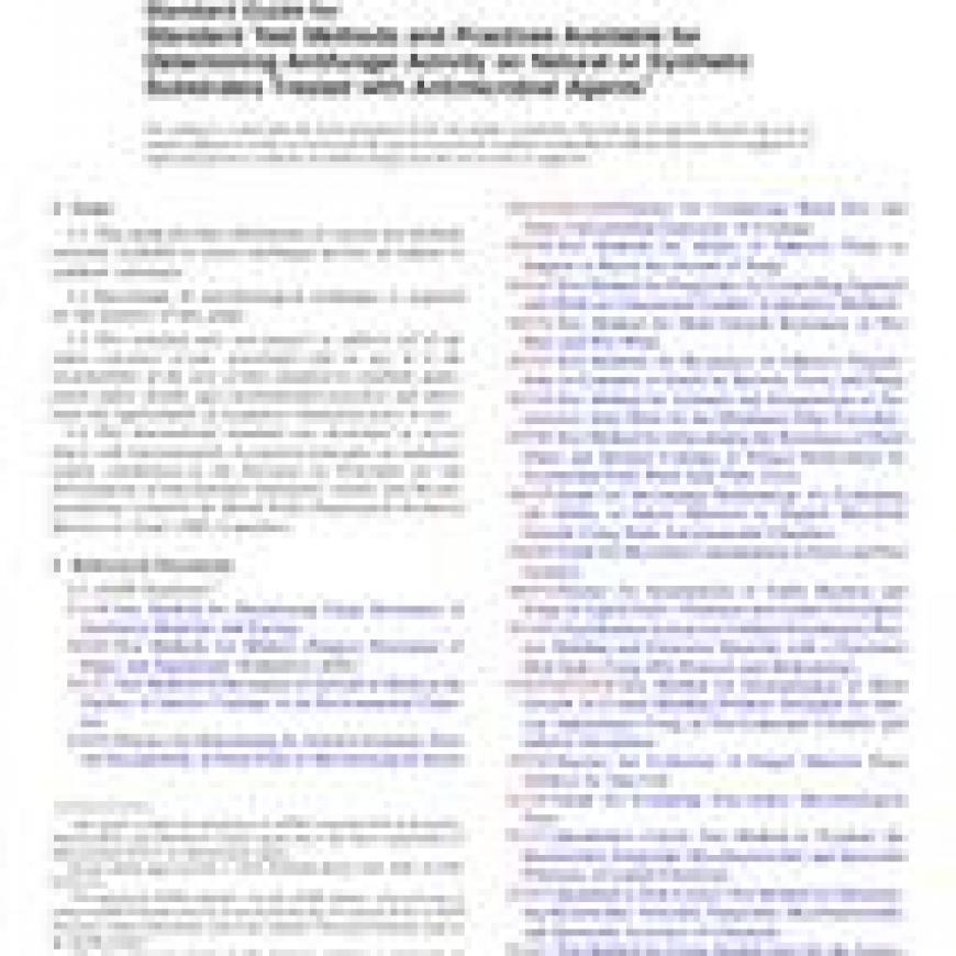 ASTM E3152-18 Standard Guide for Standard Test Methods and Practices Available for Determining Antifungal Activity on Natural or Synthetic Substrates Treated with Antimicrobial Agents