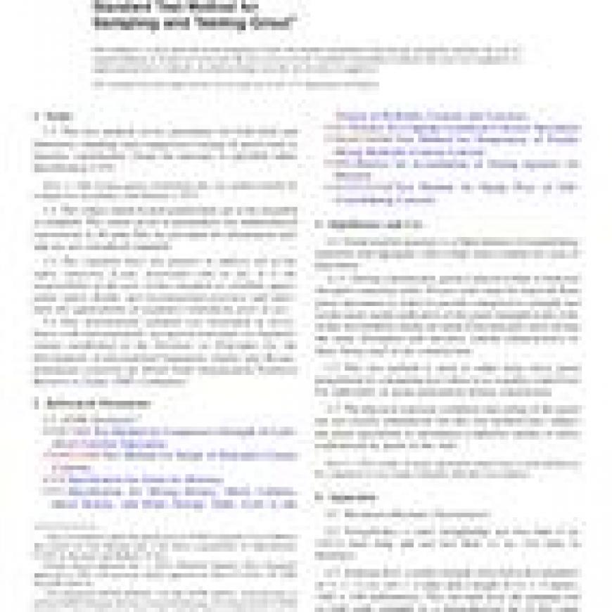1.1This test method covers procedures for both field and laboratory sampling and compression testing of grout used in masonry construction. Grout for masonry is specified under Specification C476.