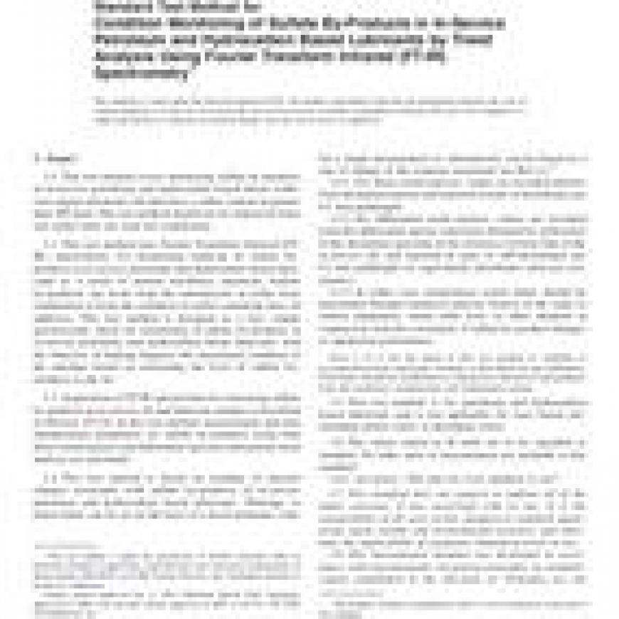 ASTM D7415-18 Standard Test Method for Condition Monitoring of Sulfate By-Products in In-Service Petroleum and Hydrocarbon Based Lubricants by Trend Analysis Using Fourier Transform Infrared (FT-IR) Spectrometry