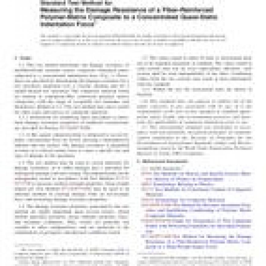 ASTM D6264/D6264M-17 Standard Test Method for Measuring the Damage Resistance of a Fiber-Reinforced Polymer-Matrix Composite to a Concentrated Quasi-Static Indentation Force