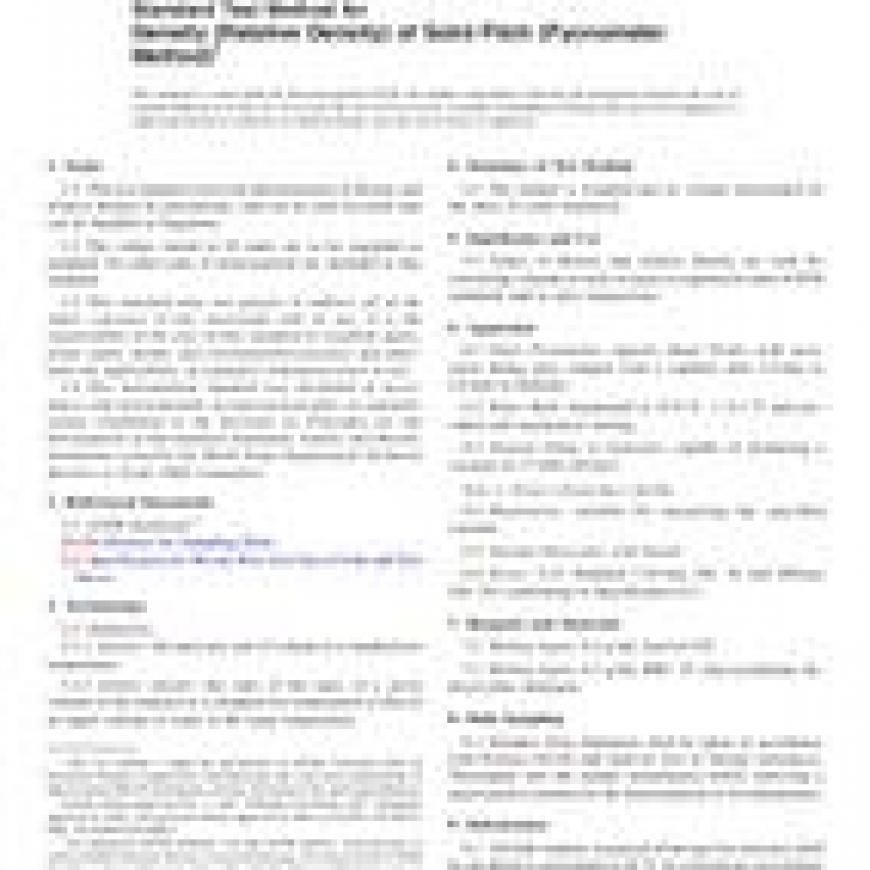 1.1This test method covers the determination of density and relative density by pycnometer, and can be used for pitch that can be handled in fragments.