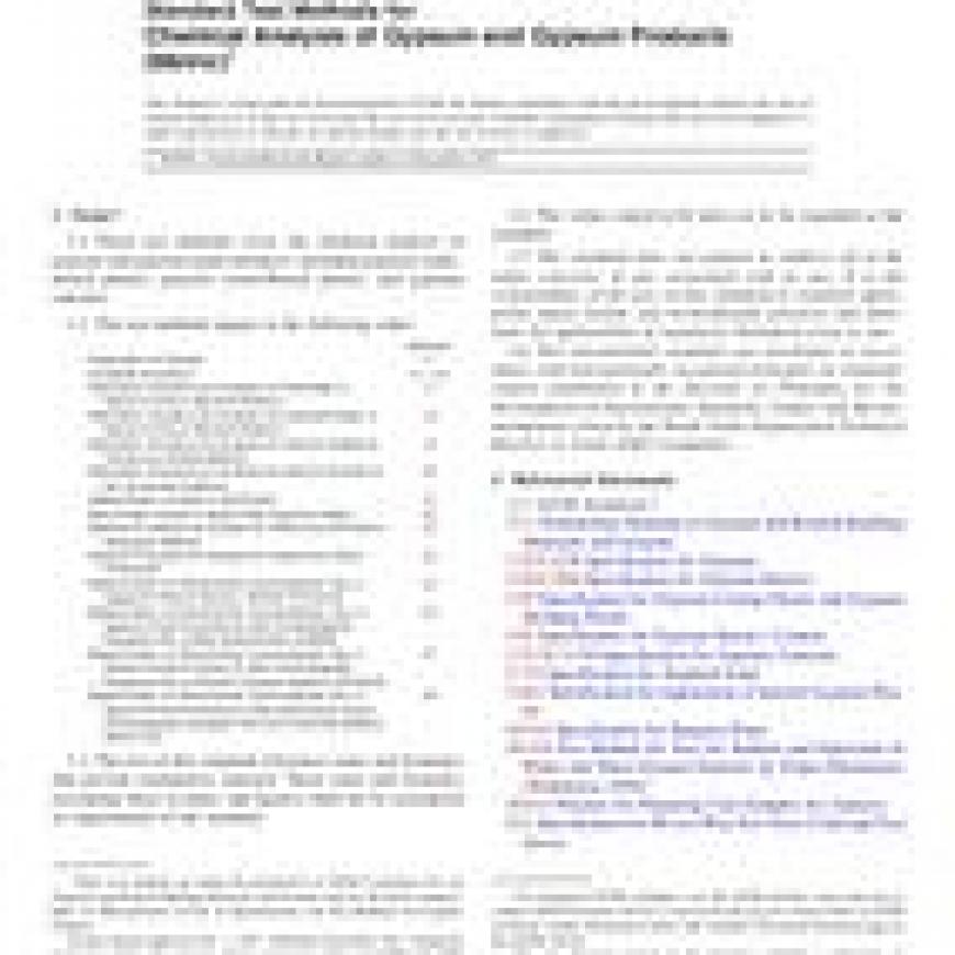 1.1These test methods cover the chemical analysis of gypsum and gypsum panel products, including gypsum ready-mixed plaster, gypsum wood-fibered plaster, and gypsum concrete.