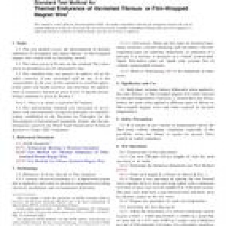 ASTM D4881-05(2017) Standard Test Method for Thermal Endurance of Varnished Fibrous- or Film-Wrapped Magnet Wire