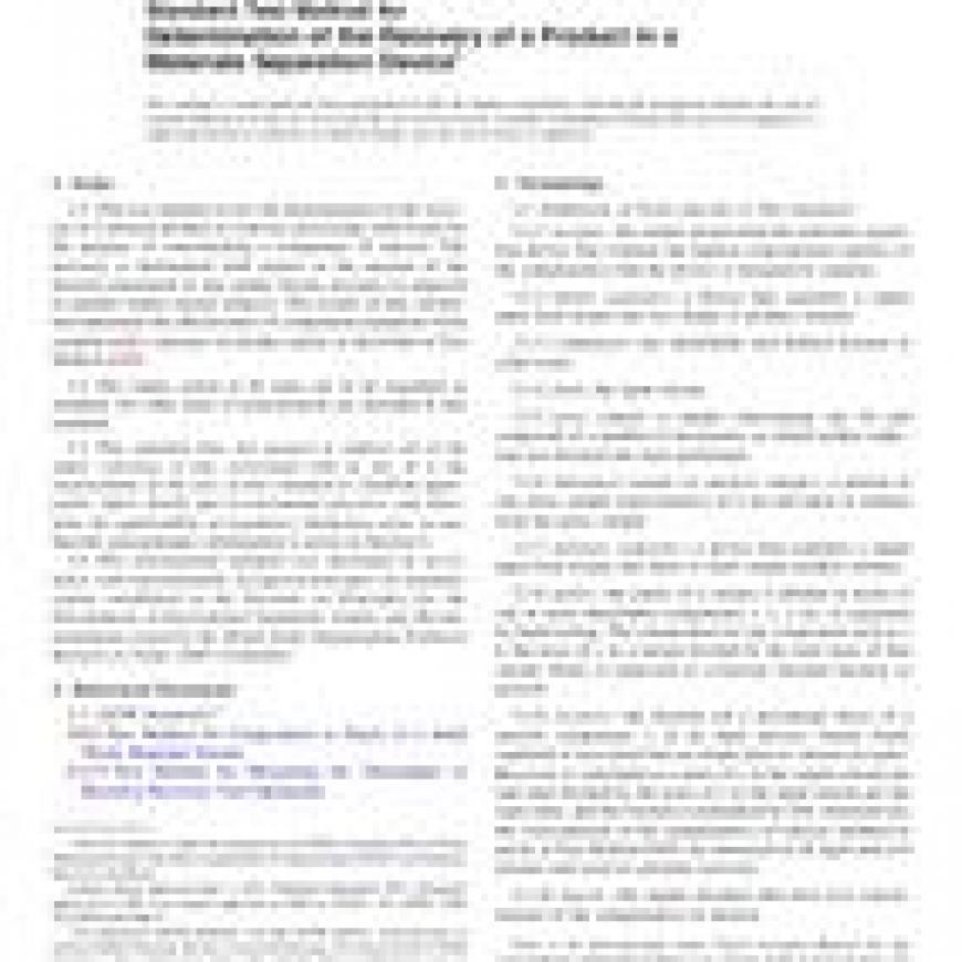 ASTM E1108-86(2017) Standard Test Method for Determination of the Recovery of a Product in a Materials Separation Device