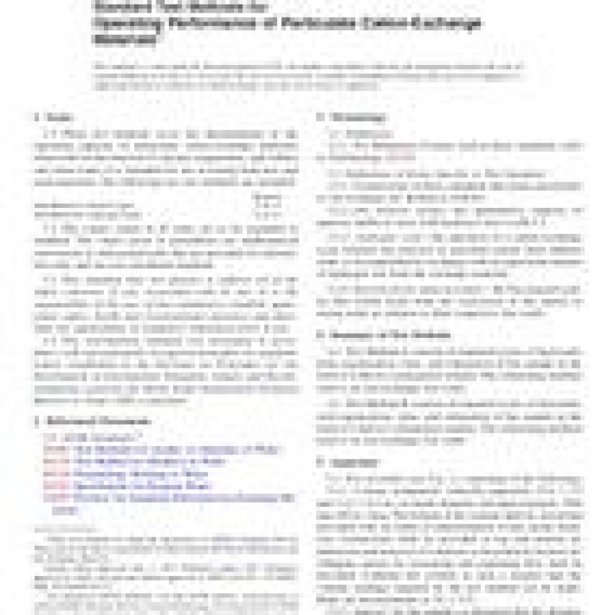 ASTM D1782-17 Standard Test Methods for Operating Performance of Particulate Cation-Exchange Materials