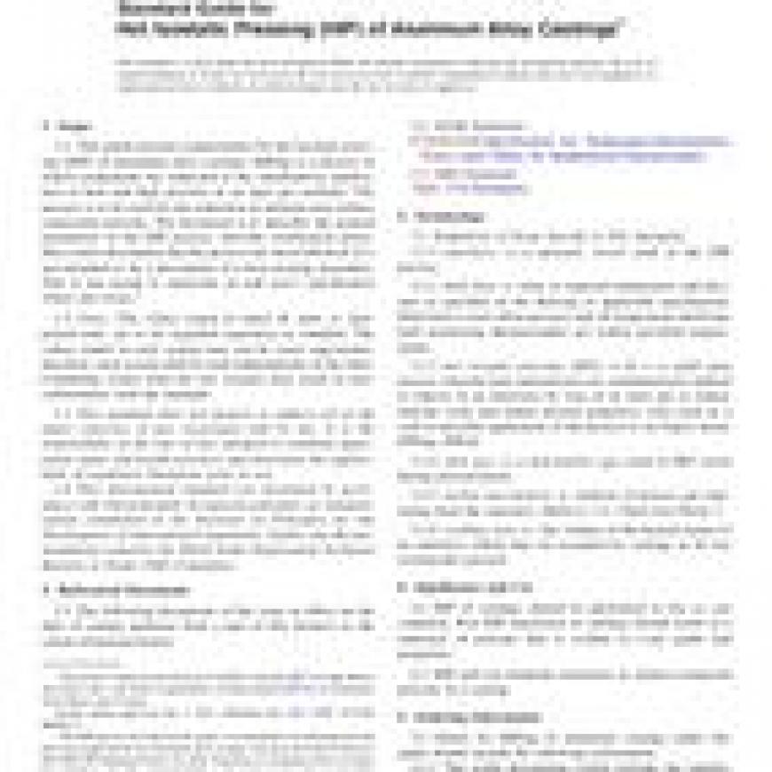 Standard Guide for Hot Isostatic Pressing (HIP) of Aluminum Alloy Castingsstandard by ASTM International, 07/01/2017
