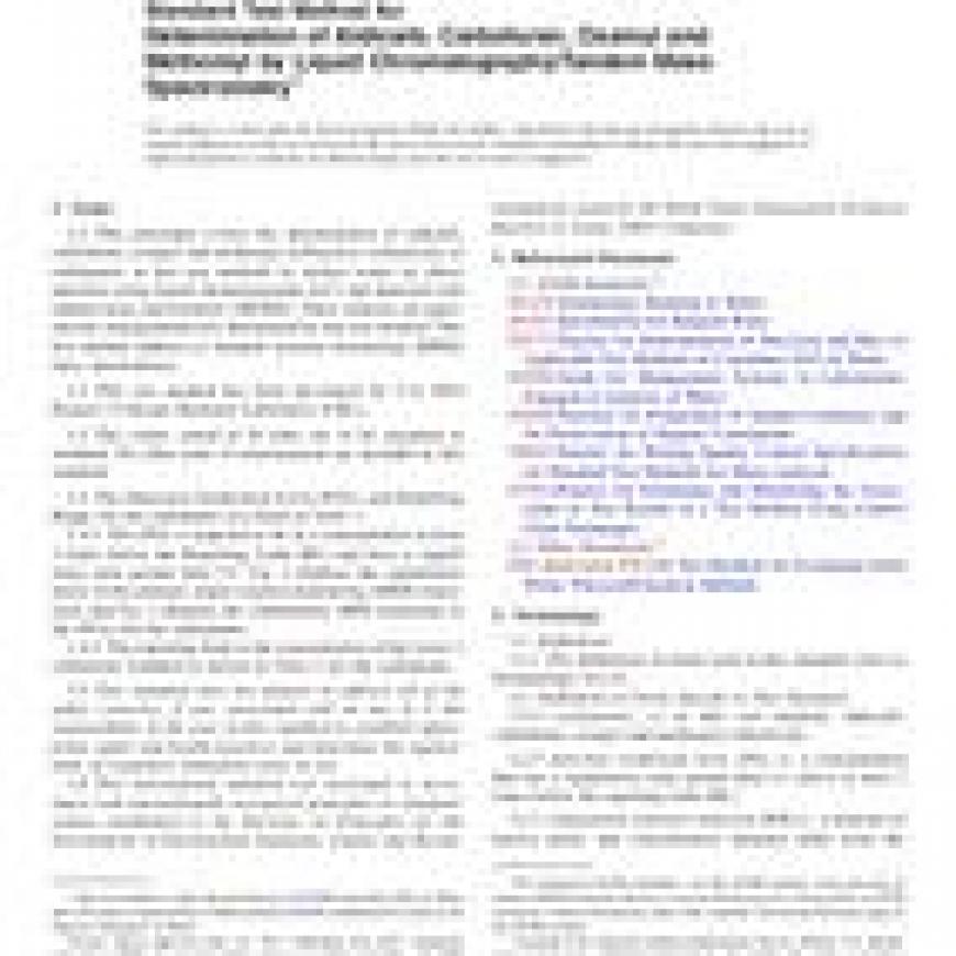 Standard Test Method for Determination of Aldicarb, Carbofuran, Oxamyl and Methomyl by Liquid Chromatography/Tandem Mass Spectrometrystandard by ASTM International, 06/15/2017
