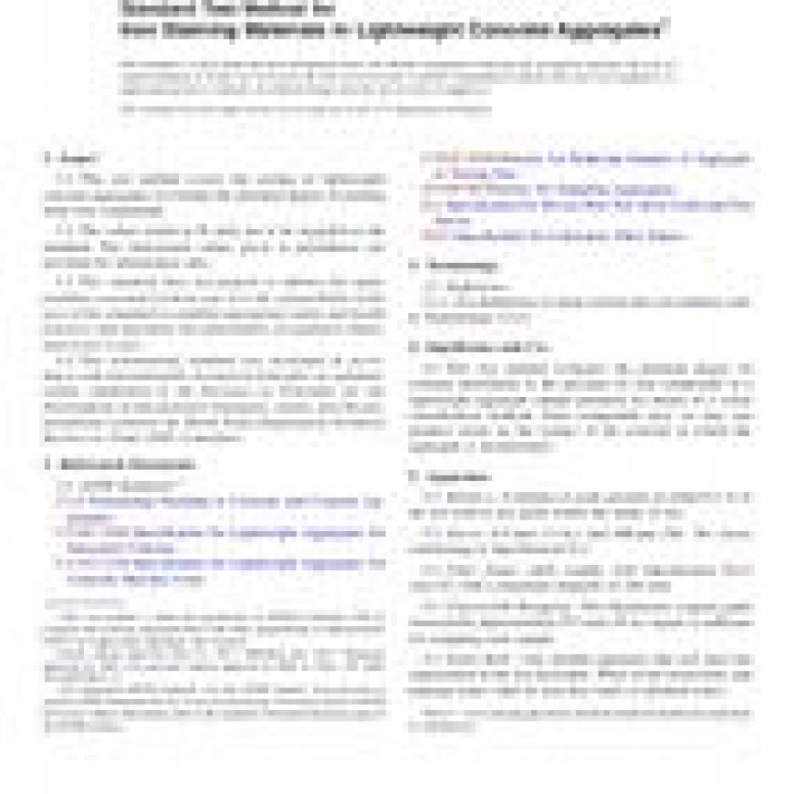 1.1This test method covers the testing of lightweight concrete aggregates to evaluate the potential degree of staining from iron compounds.