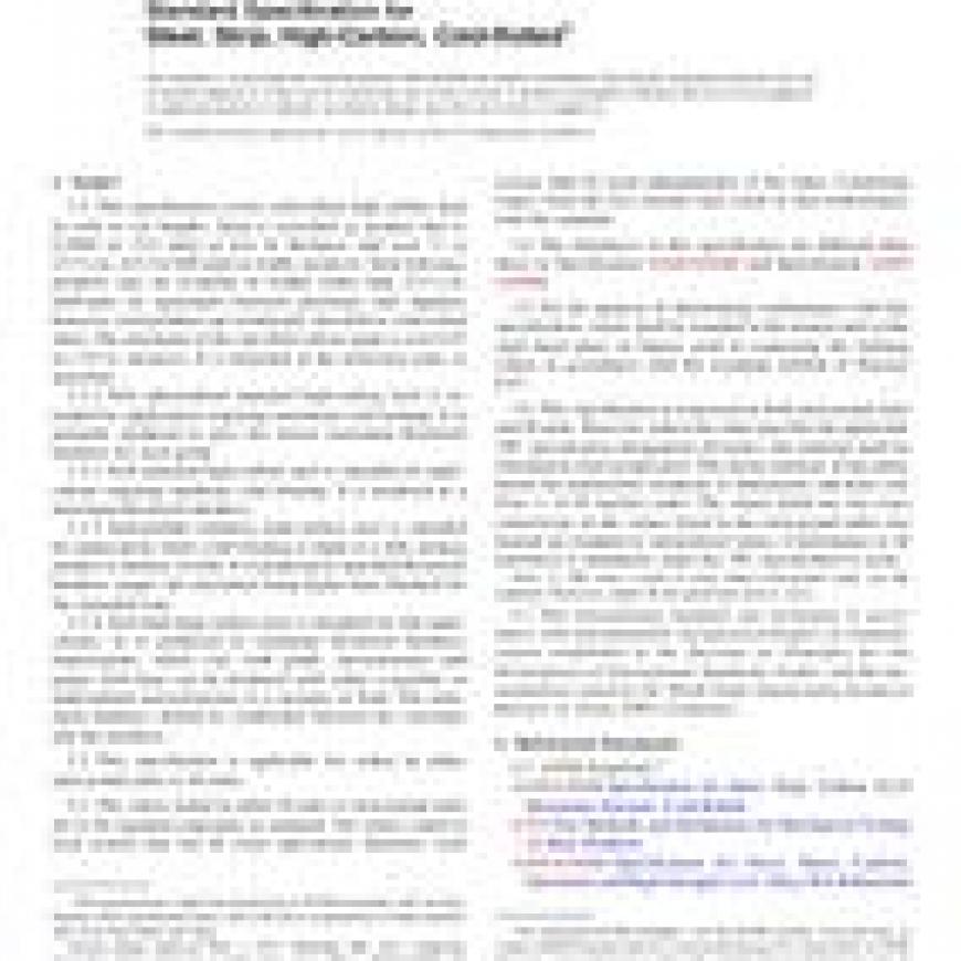 1.1This specification covers cold-rolled, high-carbon strip in coils or cut lengths. Strip is classified as product that is 0.3000 in. [7.6 mm] or less in thickness and over 1/2to 2315/16in. [12.5 to 600mm] in width, inclusive. Strip tolerance products may be available in widths wider than 2315/16in. (600mm) by agreement between purchaser and supplier; however, such products are technically classified as cold-rolled sheet. The maximum of the specified carbon range is over 0.25 to 1.35%, inclusive. It is furnished in the following types as specified: