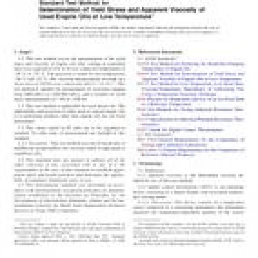 Standard Test Method for Determination of Yield Stress and Apparent Viscosity of Used Engine Oils at Low Temperaturestandard by ASTM International, 05/01/2017