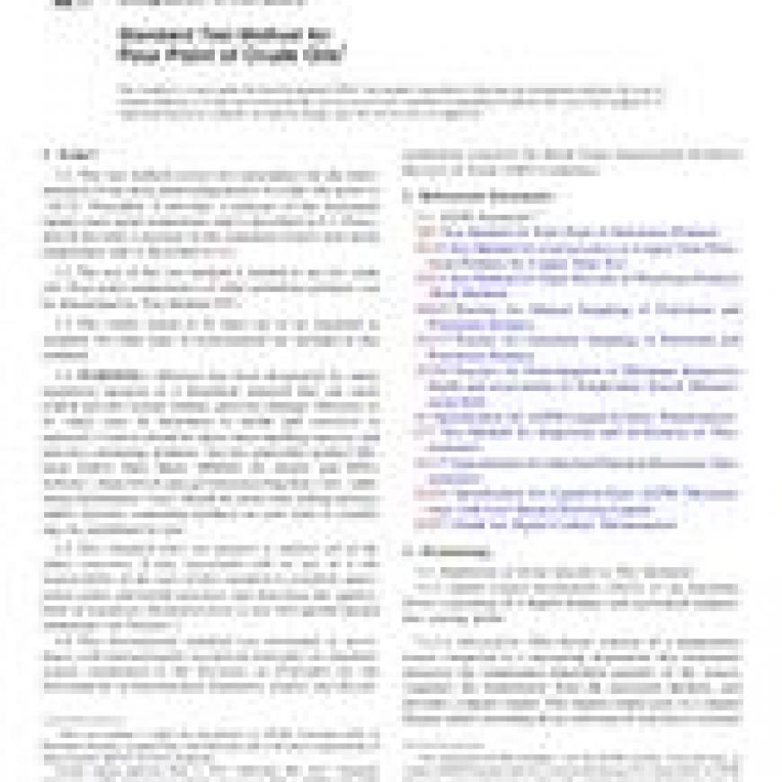 Standard Test Method for Pour Point of Crude Oilsstandard by ASTM International, 05/01/2017