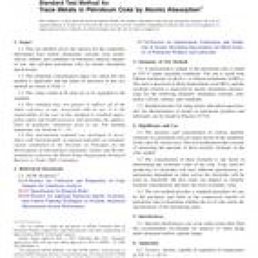 Standard Test Method for Trace Metals in Petroleum Coke by Atomic Absorptionstandard by ASTM International, 05/01/2017