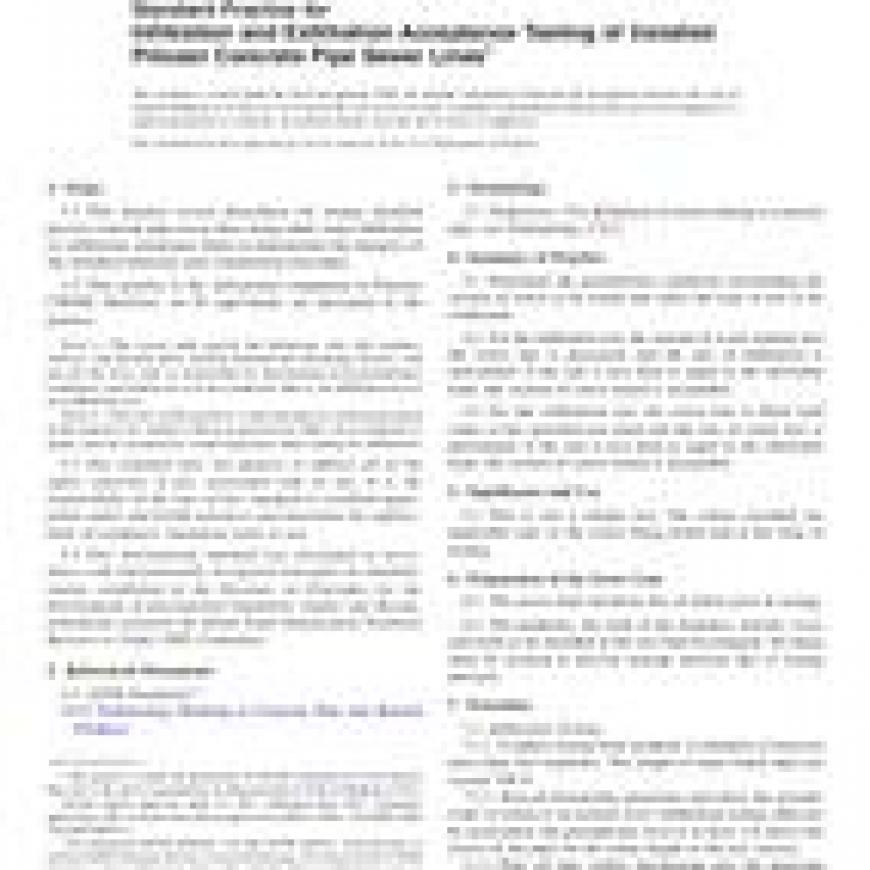 Standard Practice for Infiltration and Exfiltration Acceptance Testing of Installed Precast Concrete Pipe Sewer Linesstandard by ASTM International, 04/15/2017