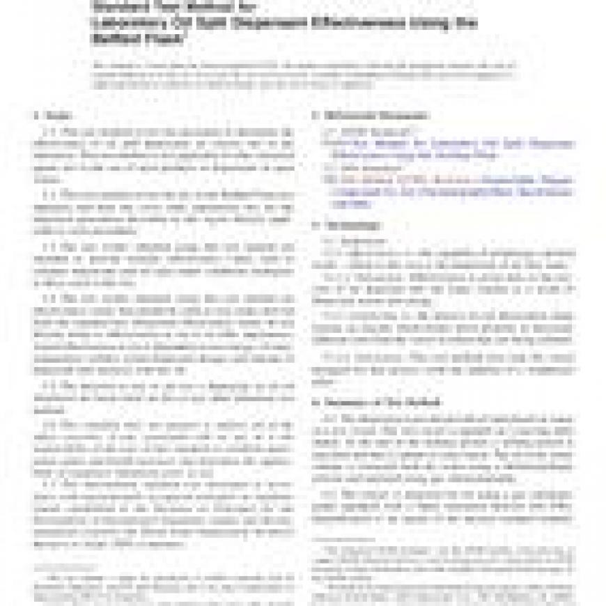 1.1This test method covers the procedure to determine the effectiveness of oil spill dispersants on various oils in the laboratory. This test method is not applicable to other chemical agents nor to the use of such products or dispersants in open waters.