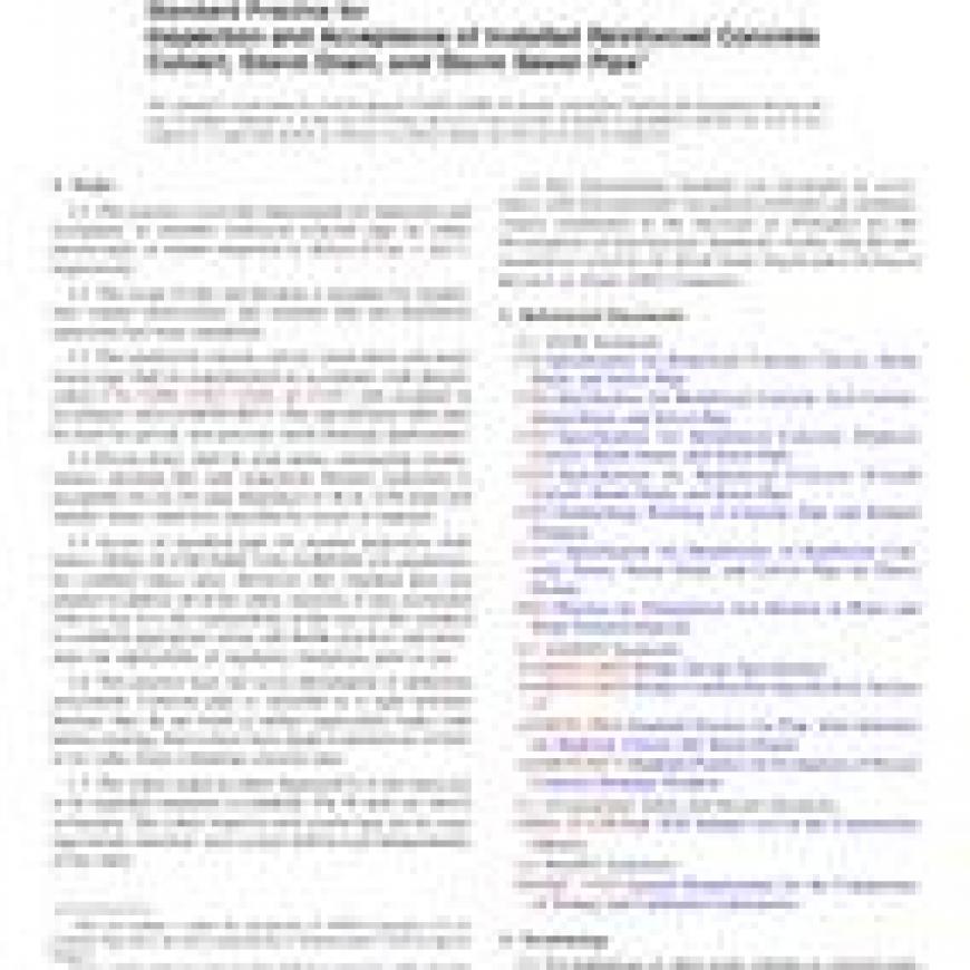 Standard Practice for Inspection and Acceptance of Installed Reinforced Concrete Culvert, Storm Drain, and Storm Sewer Pipestandard by ASTM International, 04/15/2017