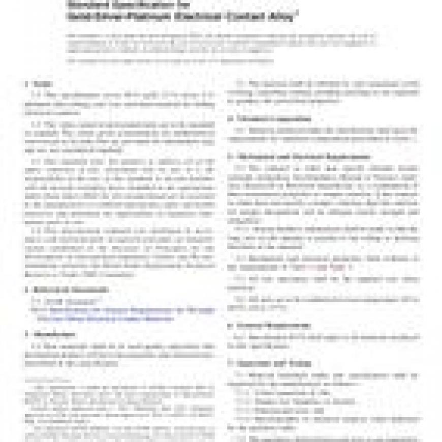 Standard Specification for Gold-Silver-Platinum Electrical Contact Alloystandard by ASTM International, 04/01/2017