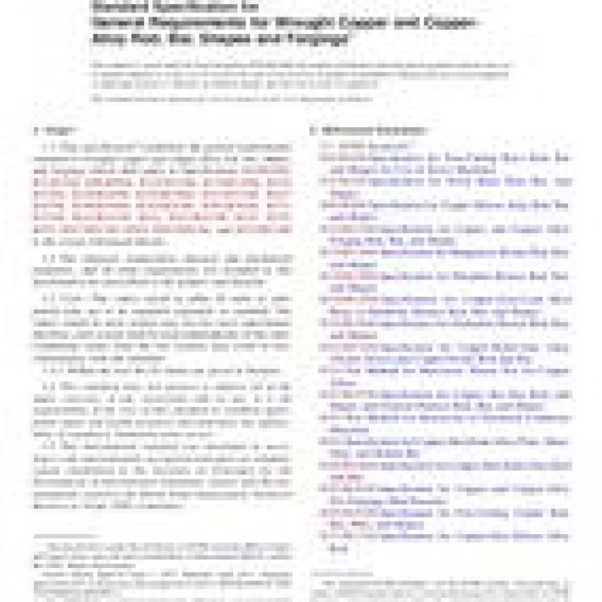 1.1This specification2 establishes the general requirements common to wrought copper and copper alloy rod, bar, shapes, and forgings which shall apply to Specifications B16/B16M, B21/B21M, B98/B98M, B124/B124M, B138/B138M, B139/B139M, B140/B140M, B150/B150M, B151/B151M, B187/B187M, B196/B196M, B283/B283M, B301/B301M, B371/B371M, B411/B411M, B441, B453/B453M, B455, B570, B870, B927/B927M, B929, B967/B967M, and B974/B974M to the extent referenced therein.