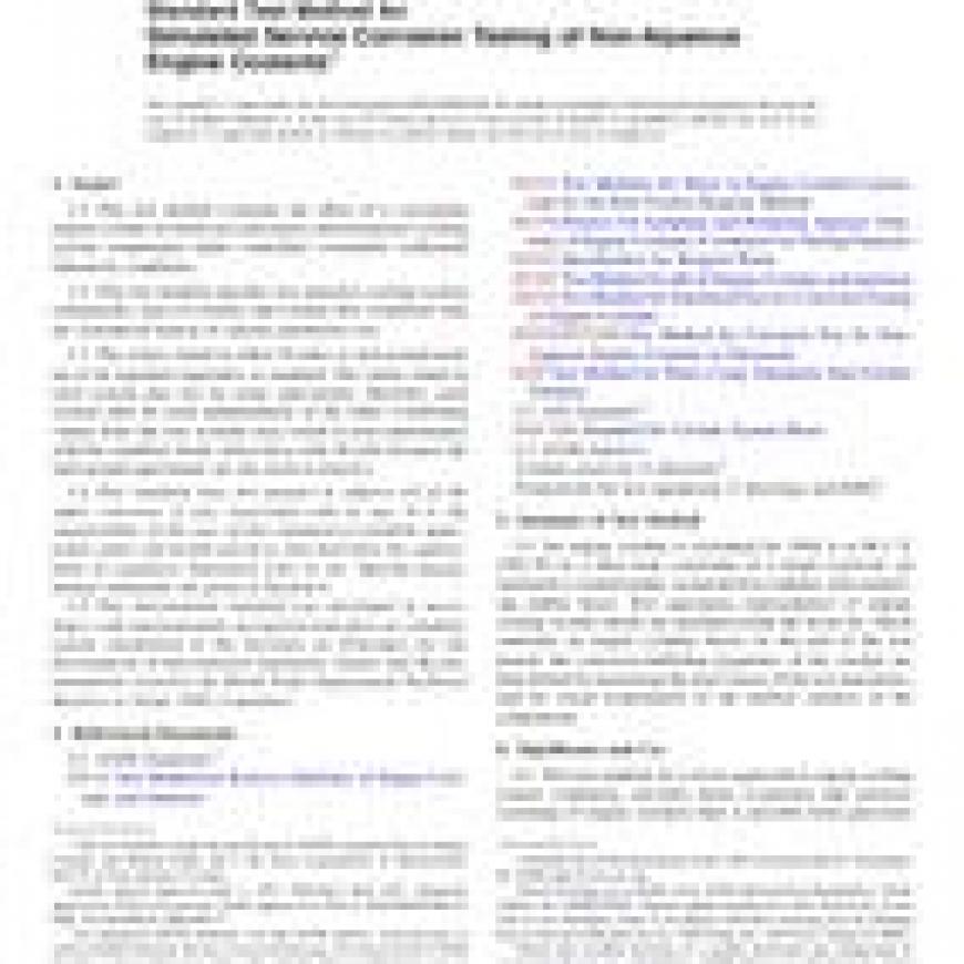 Standard Test Method for Simulated Service Corrosion Testing of Non-Aqueous Engine Coolantsstandard by ASTM International, 04/01/2017