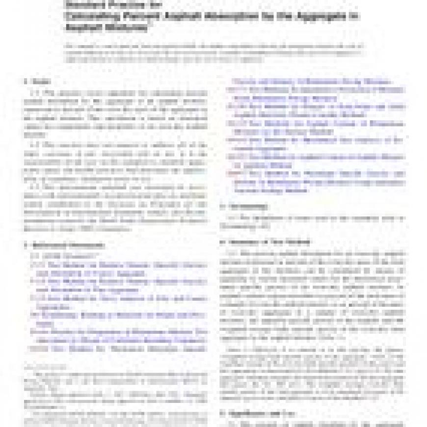 Standard Practice for Calculating Percent Asphalt Absorption by the Aggregate in Asphalt Mixturesstandard by ASTM International, 04/01/2017