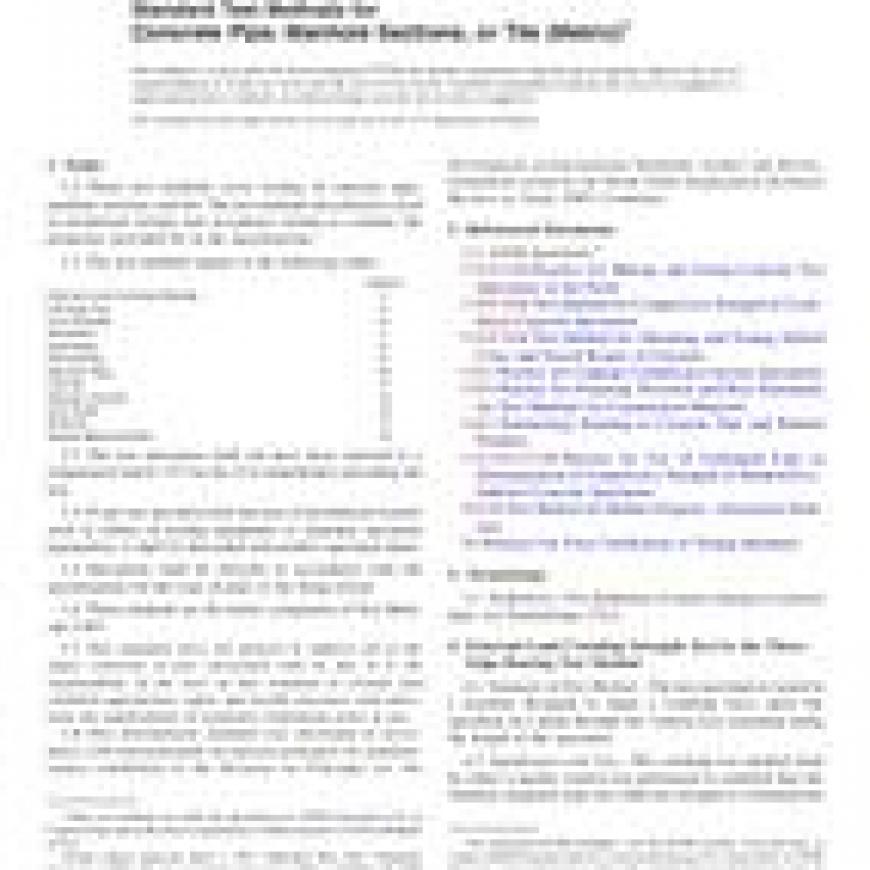 1.1These test methods cover testing of concrete pipe, manhole sections, and tile. The test methods described are used in production testing and acceptance testing to evaluate the properties provided for in the specifications.