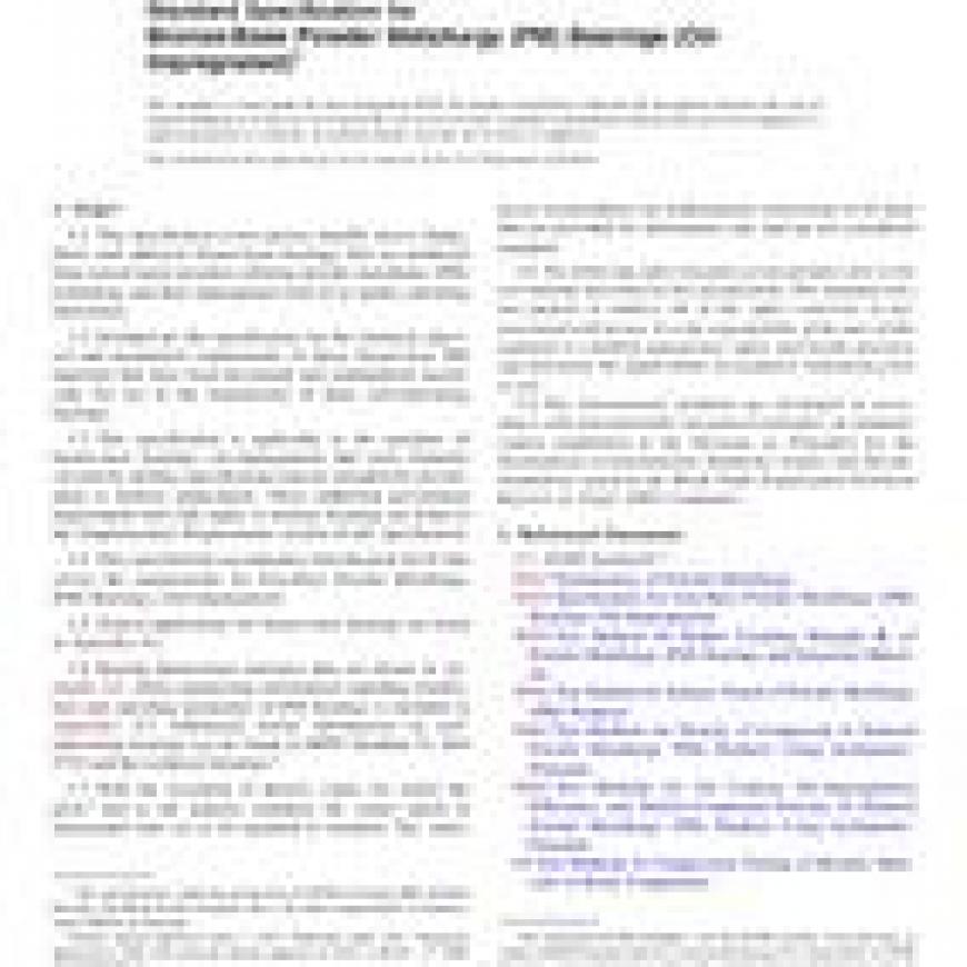 Standard Specification for Bronze-Base Powder Metallurgy (PM) Bearings (Oil-Impregnated)standard by ASTM International, 04/01/2017